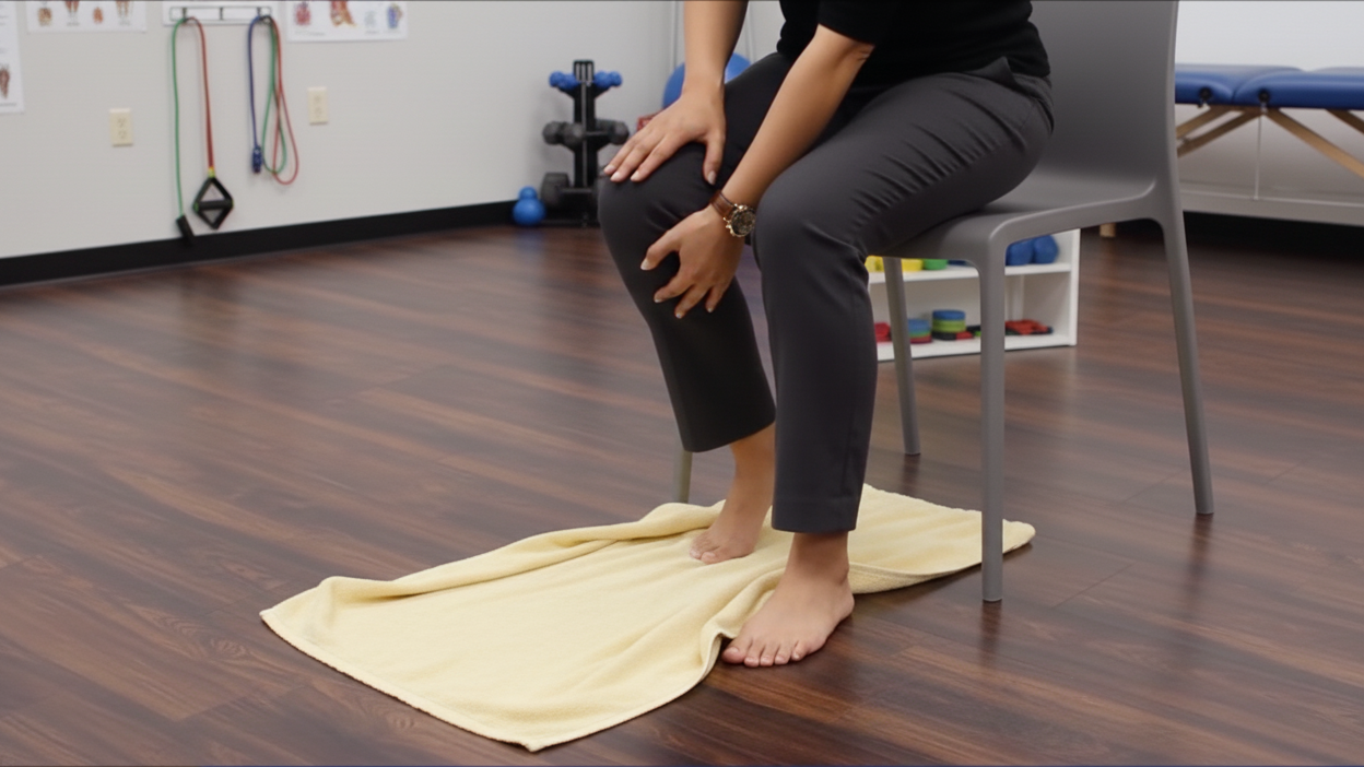 或是練習膝蓋彎曲時,在地板上墊個毛巾,降低摩擦力,讓動作更容易做出來。